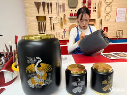Tác phẩm sắp đặt bằng sơn mài, mosaic của nghệ sĩ Phạm Minh Hiếu tại triển lãm: