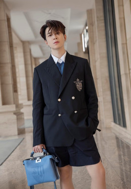 Nam diễn viên cho thấy khả năng biến hóa với từng set đồ. Anh trở thành “tổng tài bí ẩn” khi phối cả cây đen với họa tiết lông vũ, phụ kiện mắt kính… được nhận xét giống thần tượng Hàn Quốc.
