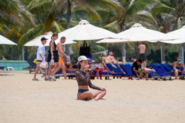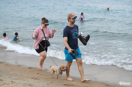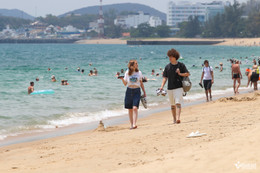 Nhiều người nước ngoài đổ ra bãi biển Nha Trang (tỉnh Khánh Hòa) tắm biển, vui chơi và giải nhiệt trong những ngày tiết trời nắng nóng.