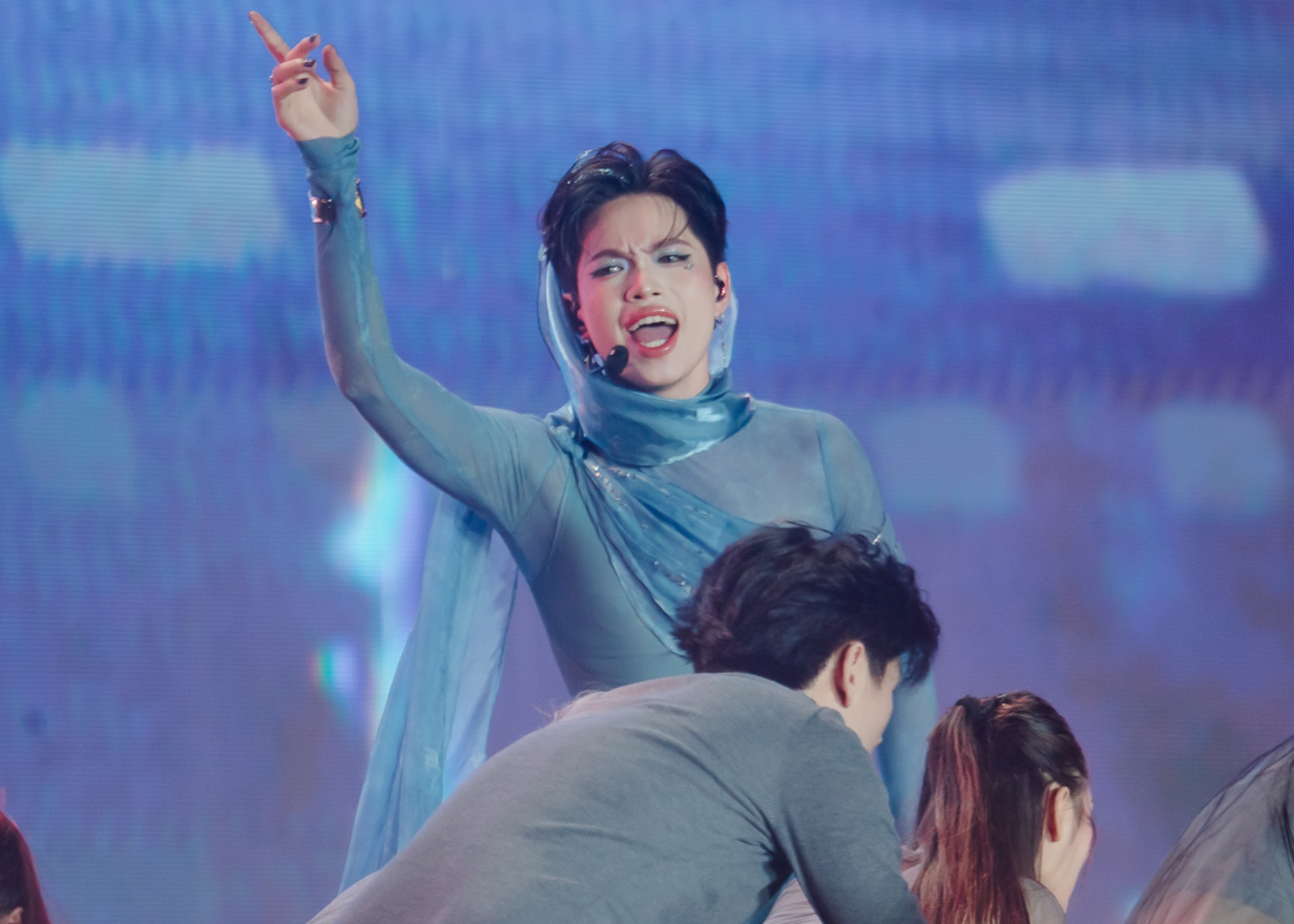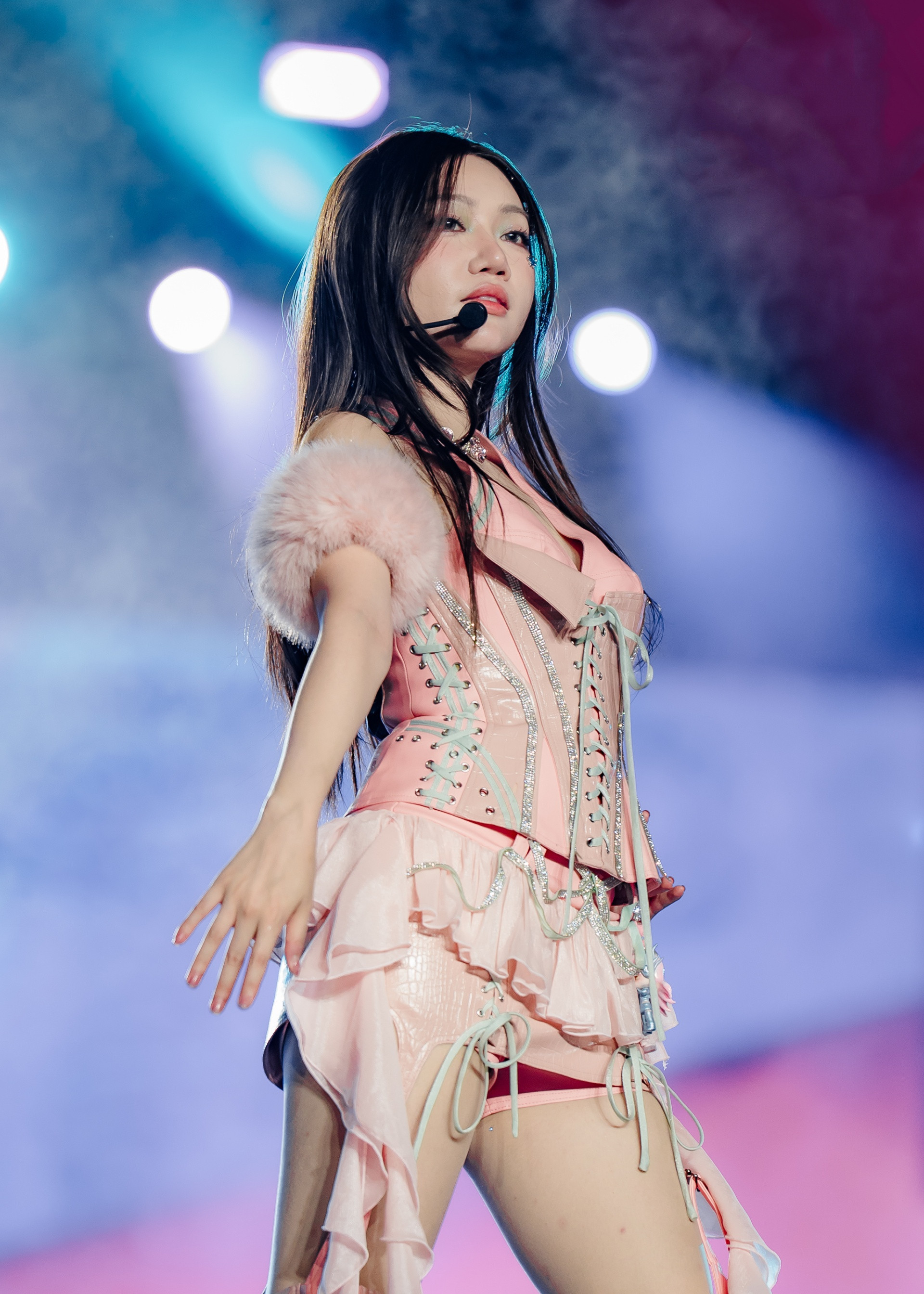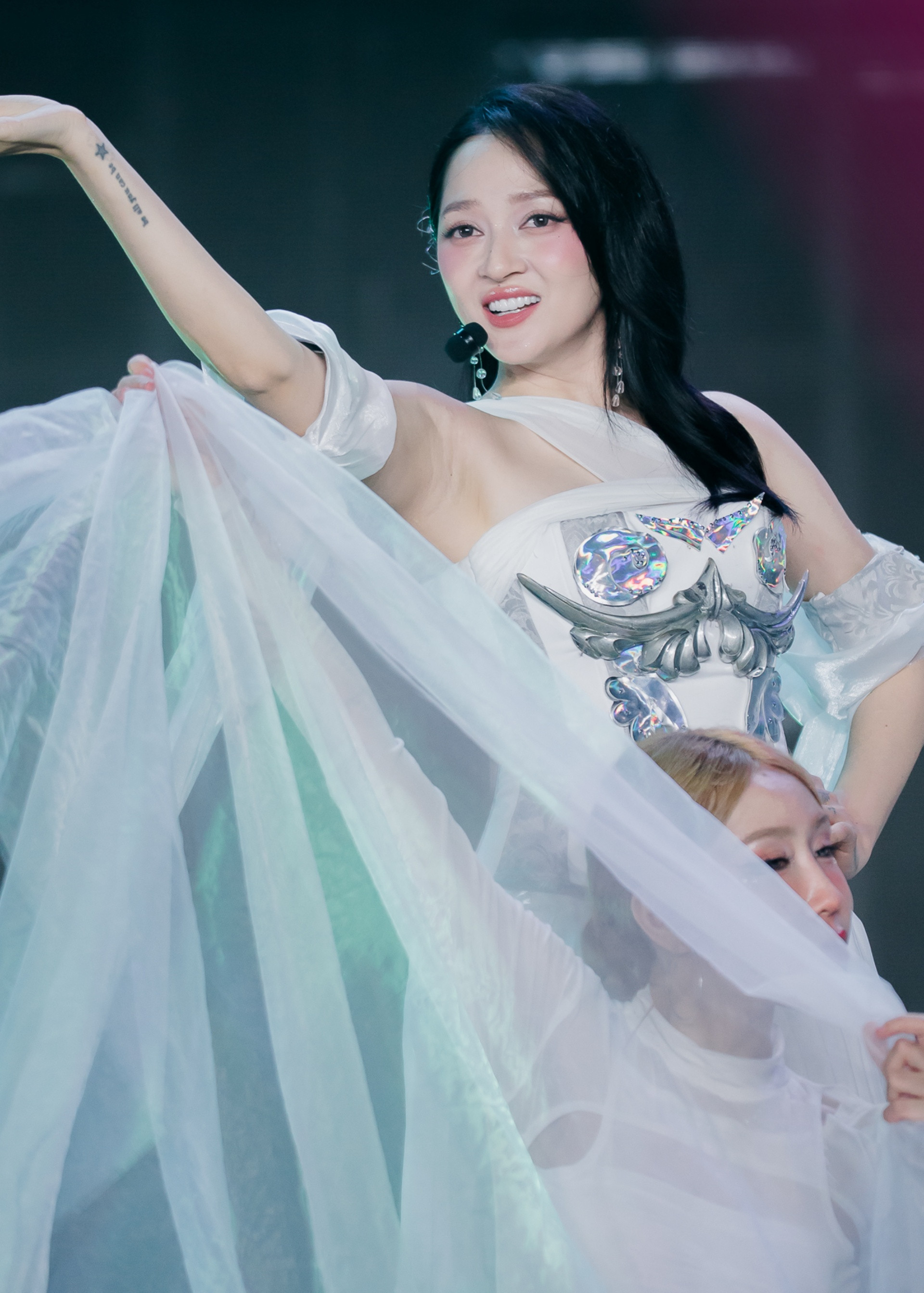 Sau khi gây tranh cãi vì muốn khán giả không gọi mình là “em xinh”, Miu Lê trầm lắng hơn, ít khuấy động không khí ở những phần giao lưu tại concert. Trong các tiết mục đồng diễn, nữ ca sĩ cũng ít cất giọng hơn các đồng nghiệp.