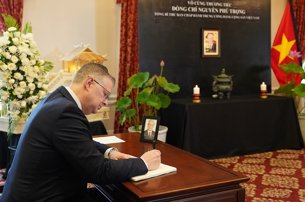 Vài ngày trước, ông Kritenbrink đã đến Đại Sứ Quán Việt Nam tại Washington ký sổ tang, chia buồn về cái chết của ông Trọng.