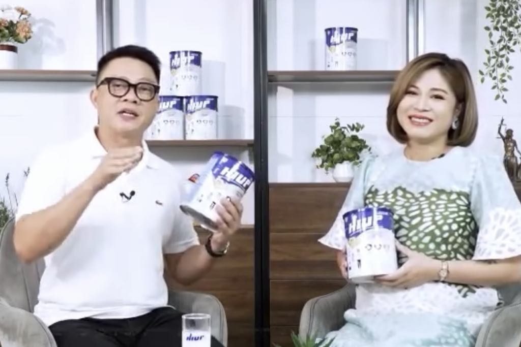 BTV Quang Minh, MC Vân Hugo trong hình ảnh quảng cáo sữa Hiup. Hai người nổi tiếng này bị phạt lần lượt 37,5 và 70 triệu đồng. Ảnh chụp màn hình