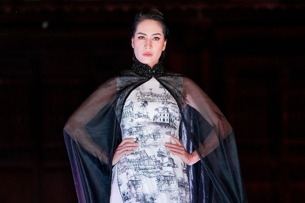 Cao Minh Tiến đưa danh lam thắng cảnh Hà Nội lên áo dàiNhững danh lam thắng cảnh của Hà Nội hiện diện trên tà áo dài của NTK Cao Minh Tiến như những bức tranh.