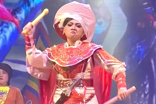 Bùm Bum – cháu gái NSƯT Vũ Linh thể hiện “Tiếng trống Mê Linh” gây phản ứng. Tiết mục này “diễn chui”, nằm ngoài danh sách cấp phép biểu diễn của Sở.