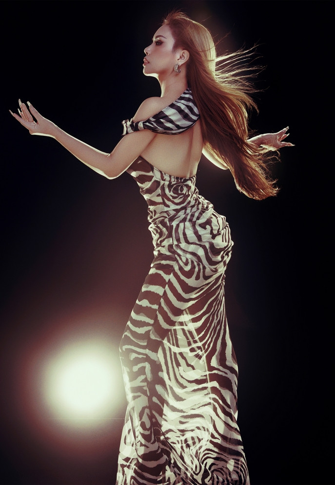 Trong loạt trang phục bó sát, cắt xẻ táo bạo, nữ ca sĩ khoe đường cong quyến rũ, vóc dáng thon gọn.