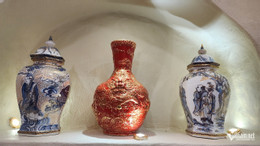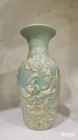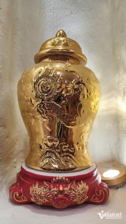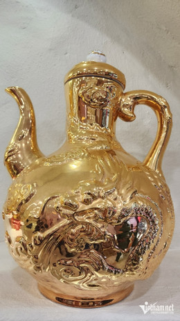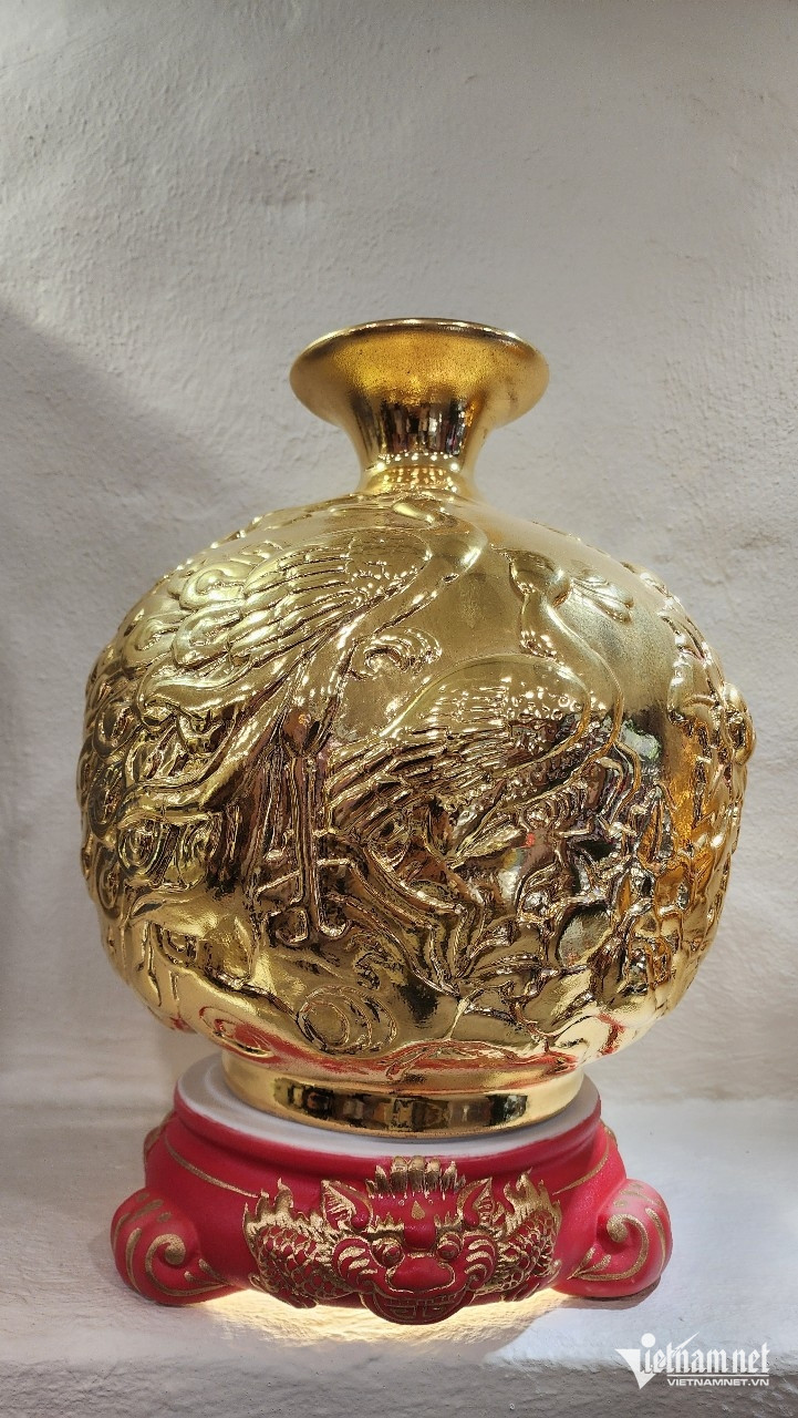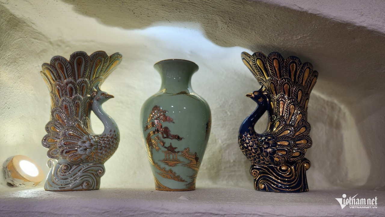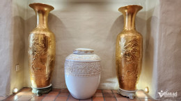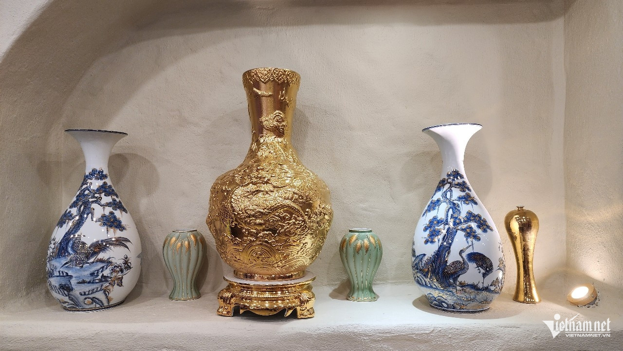 Nhiều sản phẩm gốm được phủ vàng nano 24k độc đáo đang được trưng bày tại Không gian văn hóa di sản gốm sứ Nason của Tiến sĩ Lê Duy Hảo.