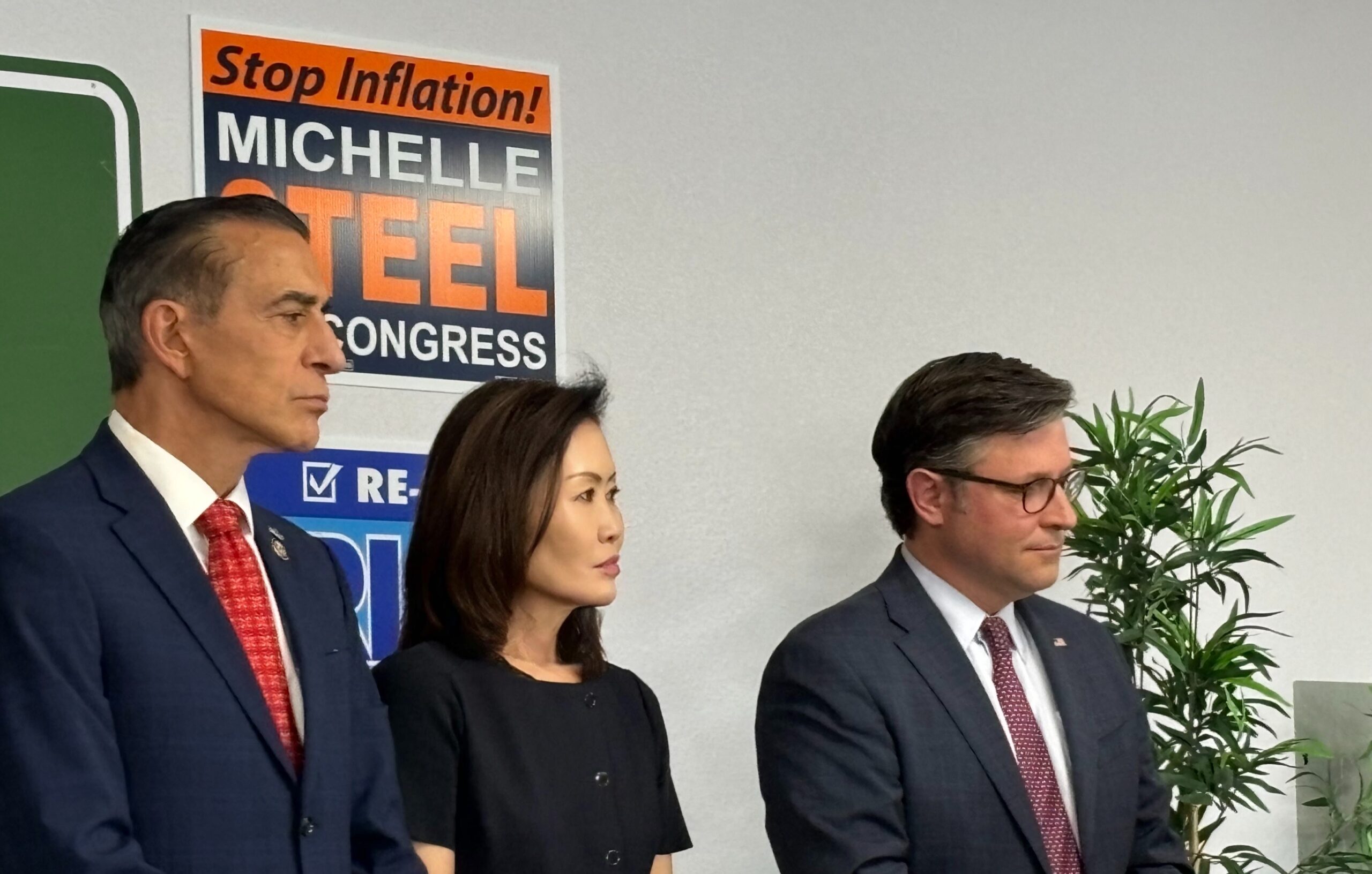 “Rất mong quý vị dồn phiếu cho bà Michelle Steel để chúng ta cải thiện kinh tế, giải quyết tệ nạn di dân bất hợp pháp, tội ác gia tăng, và cân bằng ngân sách,” nhà lãnh đạo Hạ Viện nói tiếp.