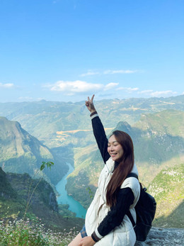 “Tháng 11 là mùa tam giác mạch, tôi lái xe qua những cung đèo nằm giữa núi rừng hùng vĩ, những cánh đồng hoa khoe sắc, đẹp như cổ tích. Khi muốn ngắm cảnh tôi sẽ chọn vị trí an toàn và dừng xe. Sông Nho Quế với làn nước trong vắt, uốn lượn dưới những vách đá dựng đứng thật sự ấn tượng”, Nhung kể.