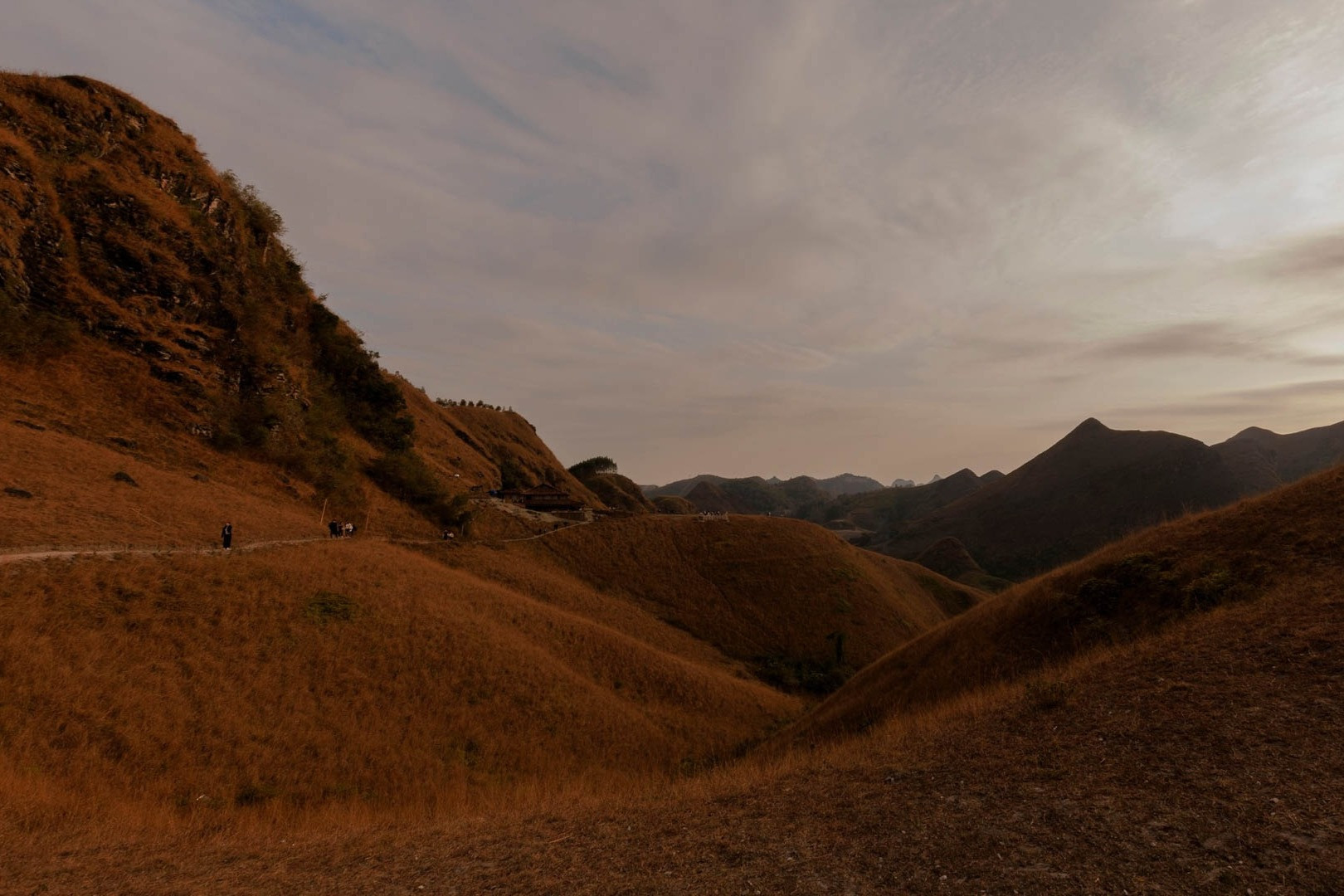 Tuy thời tiết ngày hôm đó hơi âm u, ít nắng nhưng cả gia đình vẫn rất ấn tượng với vẻ đẹp của đồi cỏ cháy Ba Quáng. Đây là trải nghiệm tuyệt vời của ông Vân bên con cháu trong ngày mùng 1 Tết. Gia đình này lưu trú lại tại khu homestay trên đồi cỏ, thưởng thức các món ăn địa phương.