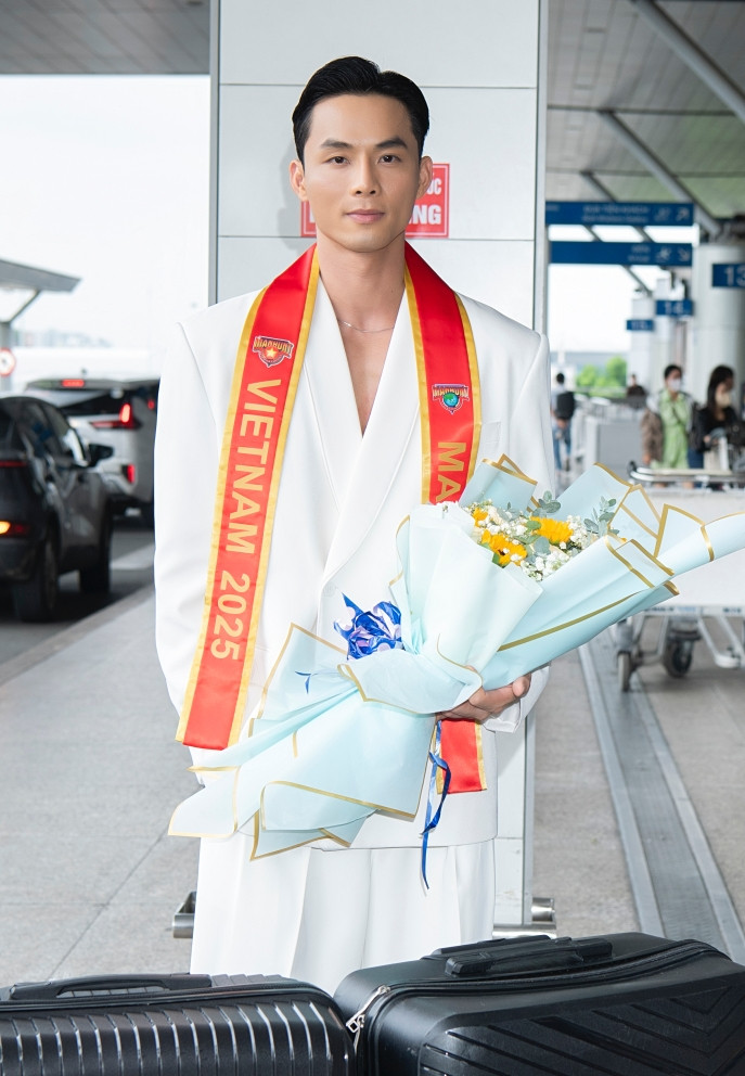 Tại sân bay Tân Sơn Nhất, Nguyễn Vũ Linh xuất hiện với phong thái tự tin, rạng rỡ và vóc dáng săn chắc, cuốn hút.
