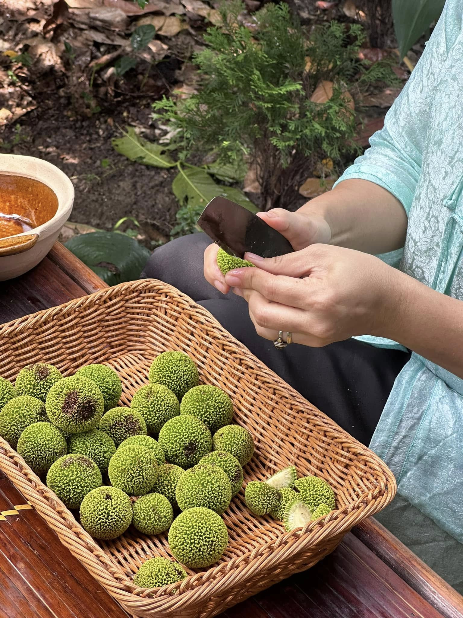 Còn quả gáo được đem bổ hoặc thái miếng tùy ý rồi ngâm ngay vào chậu nước để tránh bị thâm.
