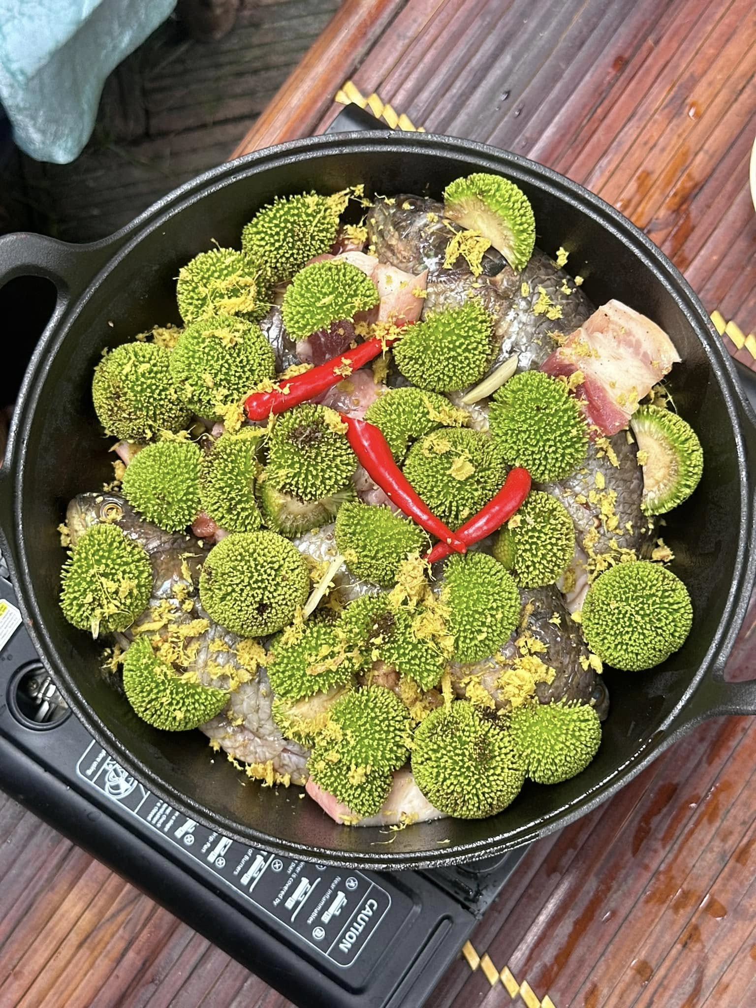Riêng quả gáo được xếp lớp trên cùng vì dễ chín nhừ, đồng thời đảm bảo vị chua, chát nhẹ của gáo tiết ra sẽ thấm đều xuống dưới.