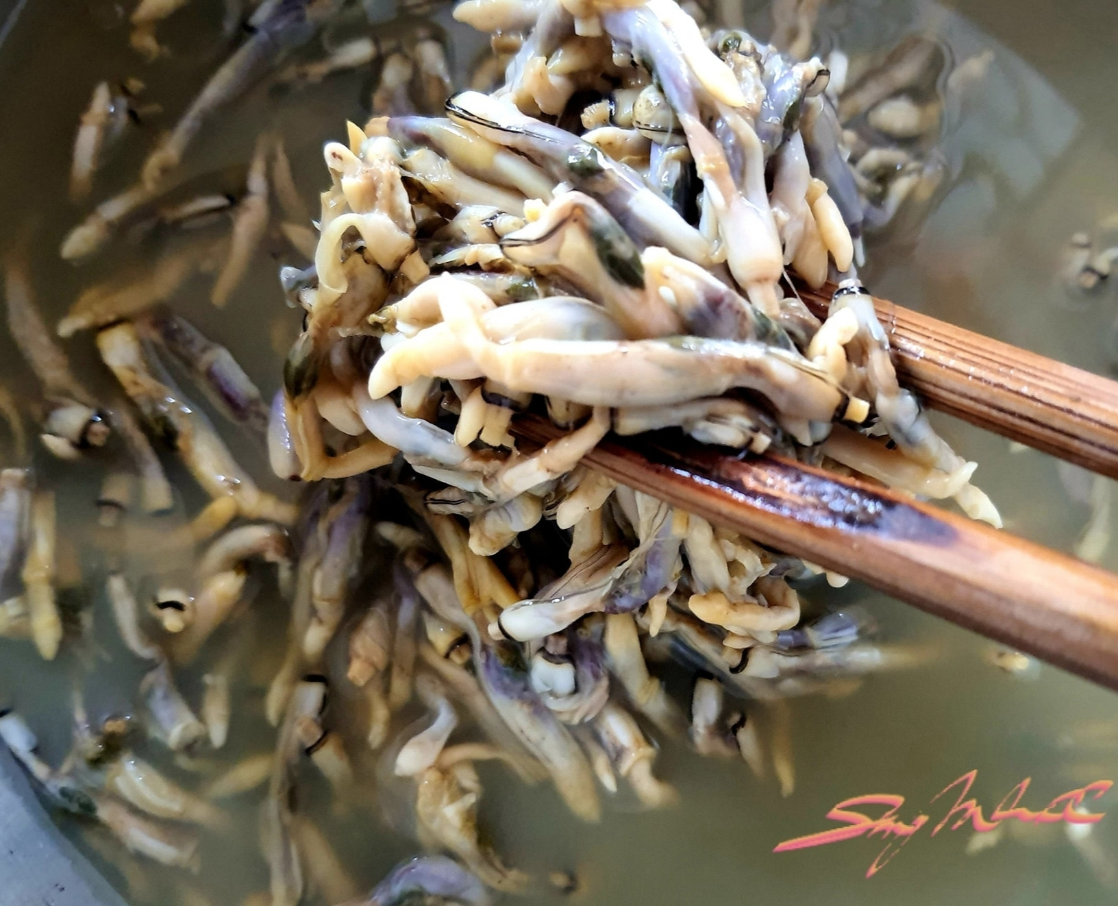 Để làm nem móng tay ngon, người địa phương lựa những con mới được đào bắt lên, còn tươi sống.
