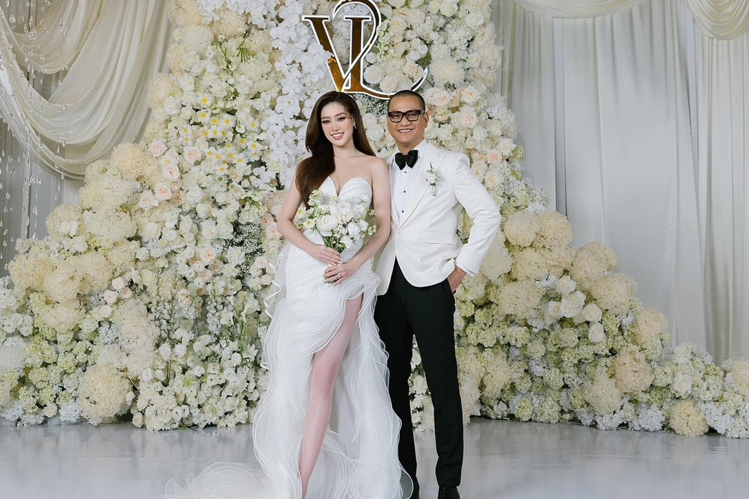 Cô dâu Khánh Vân lộ diện bên chú rể hơn 17 tuổi, tiệc cưới lung linh đón kháchTrong tiệc cưới tối 12/12, hoa hậu Khánh Vân diện đầm cúp ngực, xẻ cao khoe chân thon dài.