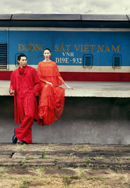 Trước thềm giới thiệu bộ sưu tập Cruise 2024, Vũ Ngọc và Son thực hiện bộ hình thời trang tại ga Sài Gòn, nơi sẽ diễn ra show. Bộ đôi NTK tiếp tục lăng xê gam màu rực rỡ, mang đậm dấu ấn cá nhân.