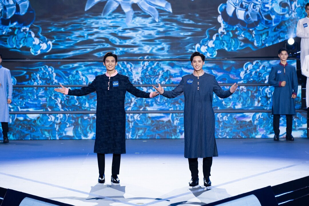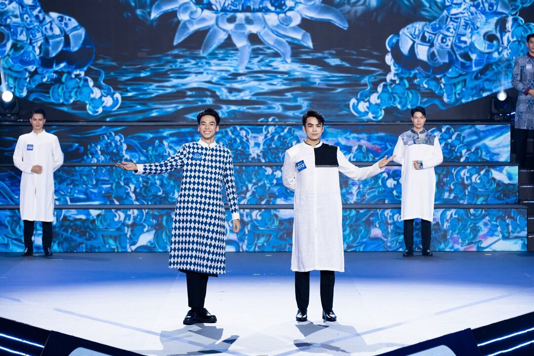 Tiếp nối là phần trình diễn áo dài, từng thí sinh diện thiết kế mang vẻ đẹp và câu chuyện đặc sắc của nền văn hóa và lịch sử Việt Nam. Thí sinh Nguyễn Hữu Duy (SBD: 066), Phạm Tuấn Ngọc (SBD: 051), Trần Hoàng Sơn (SBD: 082) có phần trình diễn tự tin, ấn tượng với khán giả.