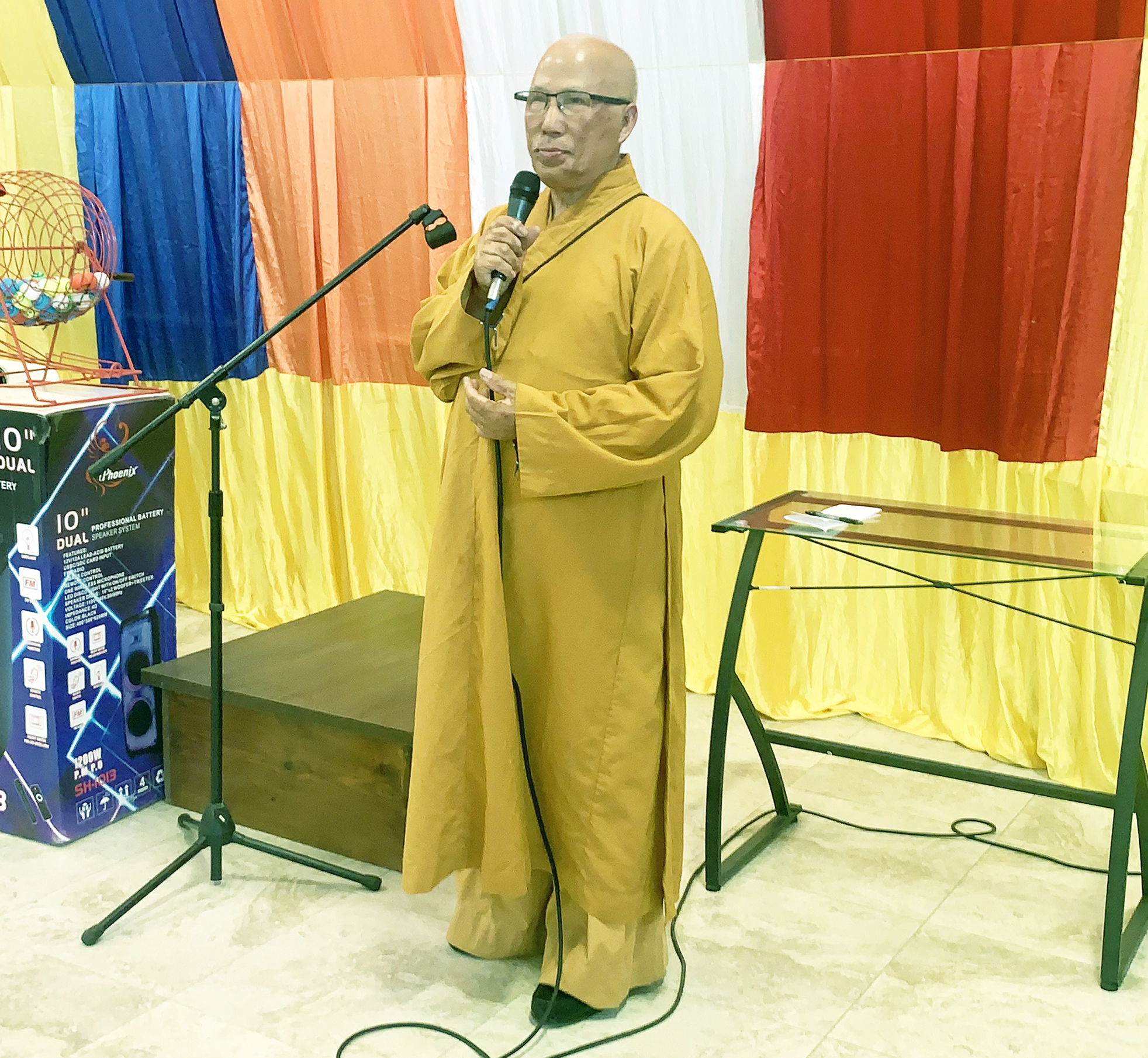 Ông nói tiếp: “Những tài khoản mà ban tổ chức thu nhận được hôm nay sẽ được sung vào quỹ trùng tu xây dựng những gì còn dang dở của tu viện này. Cũng như những gì mà quý vị đã đóng góp trong thời gian qua và hôm nay, không có nghĩa là cúng dường mà là chúng tôi xin được đồng hương yểm trợ. Vì tu viện Hoa Nghiêm là ngôi nhà chung của cộng đồng Phật Giáo, cũng là của cộng đồng người Việt tại hải ngoại, chớ không phải của riêng ai hết.”