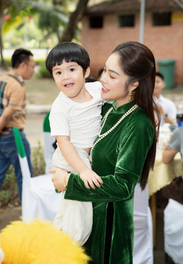 Dương Cẩm Lynh tranh thủ dịp hè đưa bé Liam, con trai 4 tuổi của mình đi cùng để vừa trông con vừa gặp gỡ đồng nghiệp trong buổi giới thiệu dự án phim mới.