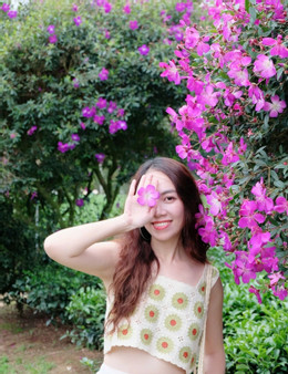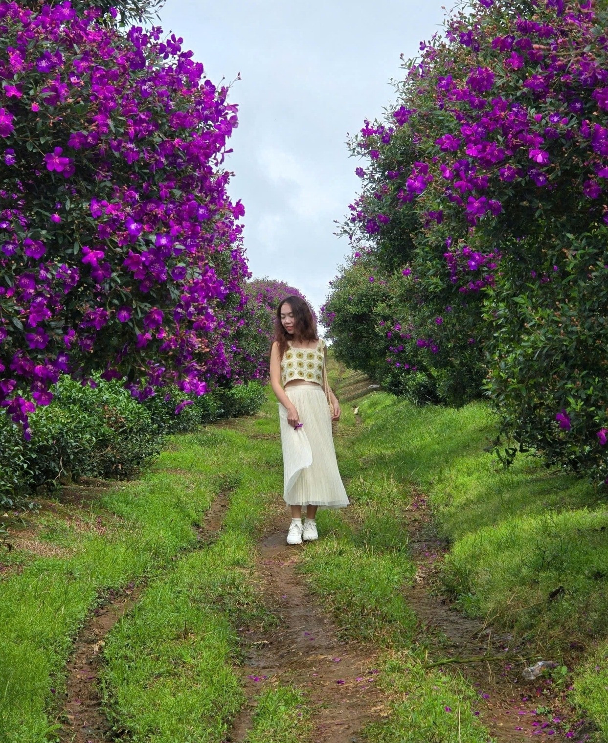 Những ngày qua, bộ ảnh chụp bên hàng hoa mua tím của chị Bùi Kim Ngân (32 tuổi, TP Bảo Lộc, Lâm Đồng) khiến nhiều người thích thú.