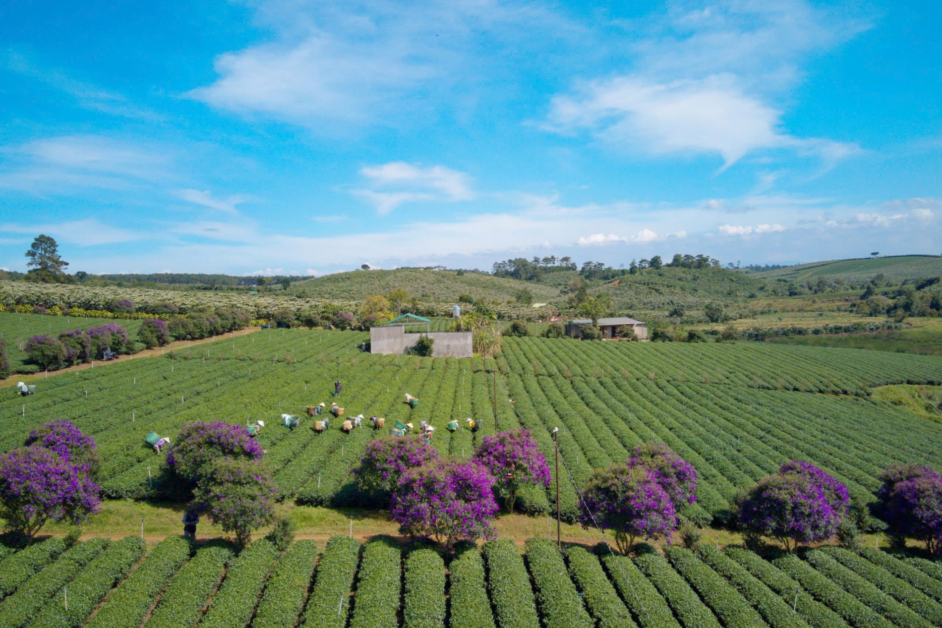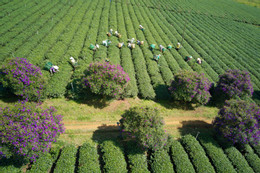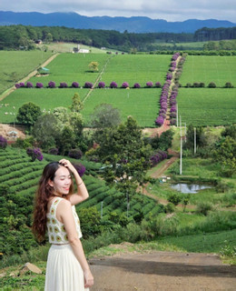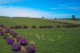 Nông trường trồng chè Oolong Tằng Vĩnh An ở Bảo Lâm, Lâm Đồng có những hàng mua tím đẹp như tranh. Nhiều bạn trẻ tìm đến đây để tận mắt chiêm ngưỡng và chụp ảnh.