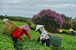 Chị Nguyễn Thị Tường Vy, Phó Giám đốc công ty Tằng Vĩnh An cho biết, hàng hoa mua tím do nông trường trồng cách đây 4 năm. Mọi người chăm sóc hoa cẩn thận như chăm cây chè Oolong. Nhờ vậy, hoa mua ở đây nở đẹp, ít bị sâu bệnh.