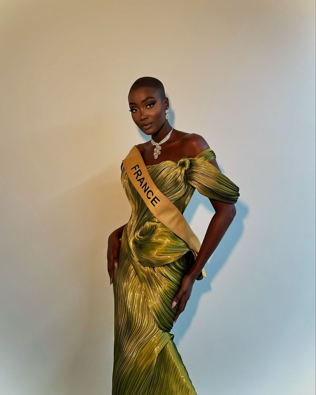 Á hậu 3 Miss Grand International 2024 Safiétou Kabengele đến từ Pháp năm nay 26 tuổi, cao 1,84m, sở hữu mái đầu trọc cá tính, nổi bật.