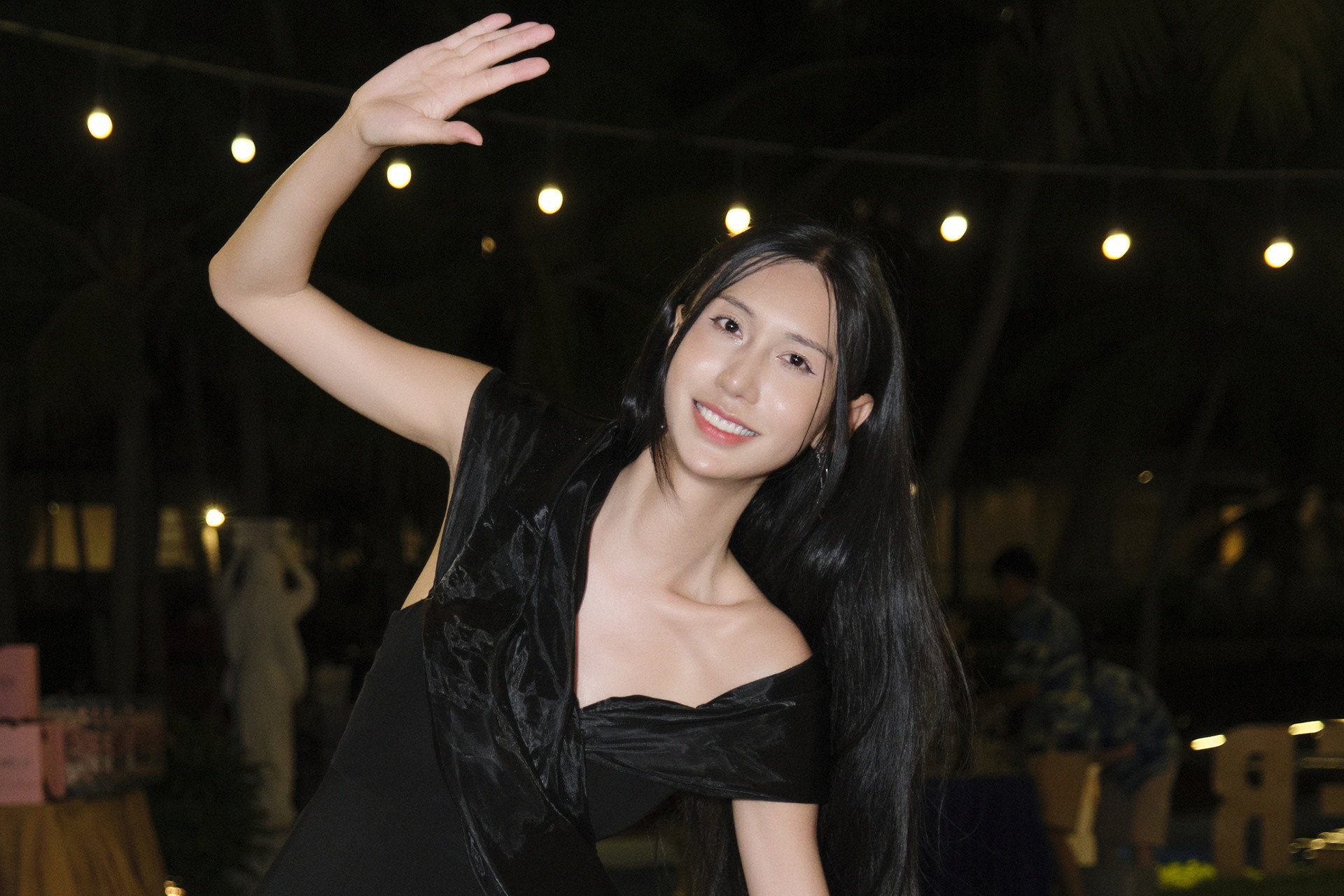 Tiểu Vy gây chú ý với thái độ ngượng ngùng, cười đỏ mặt khi nhắc đến đàn anh. Cô cho biết may mắn khi cùng đội Trần Nhậm, hai người hòa hợp về tính cách, trò chuyện đến phối hợp đều ăn ý.