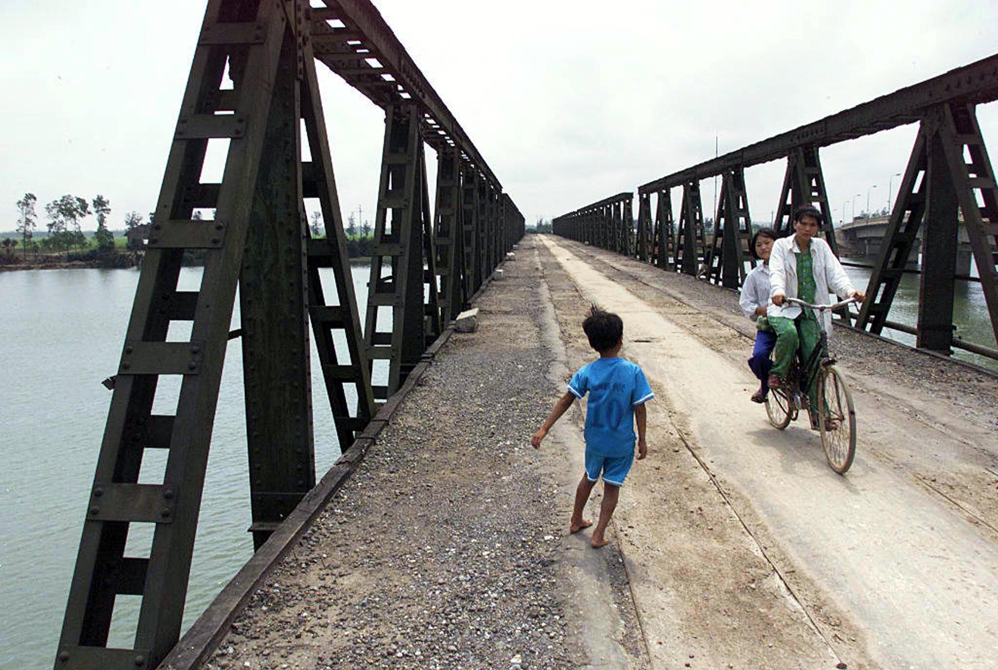 Cầu Hiền Lương, cây cầu lịch sử, trên sông Bến Hải chia đôi đất nước Việt Nam sau khi có hiệp định Genève năm 1954. Miền Bắc theo Cộng sản, miền Nam theo chính thể Cộng hòa tự do. (Hình: Hoàng Đình Nam/AFP/Getty Images)