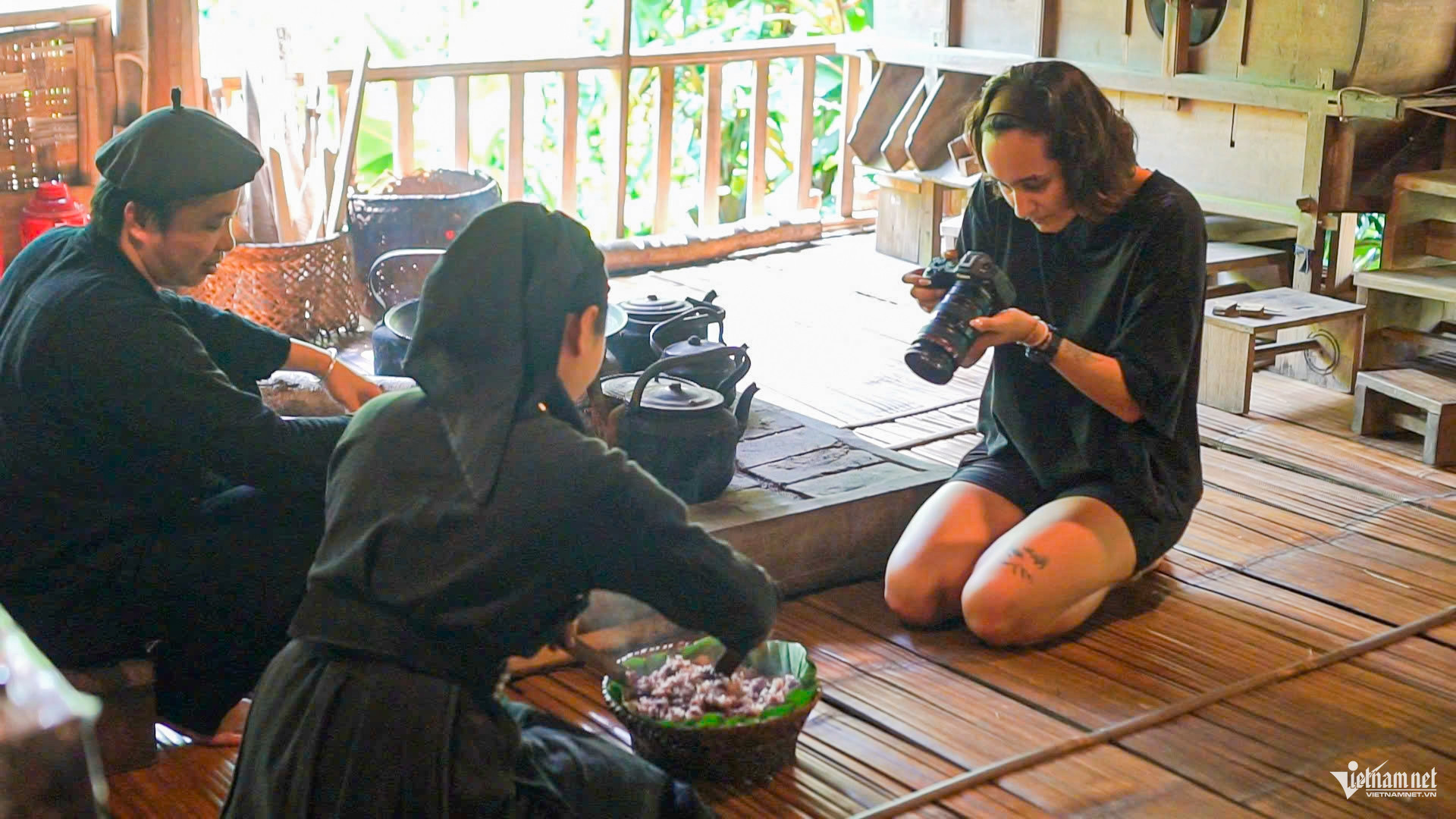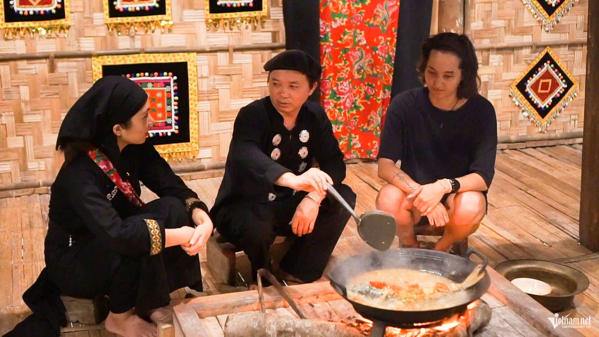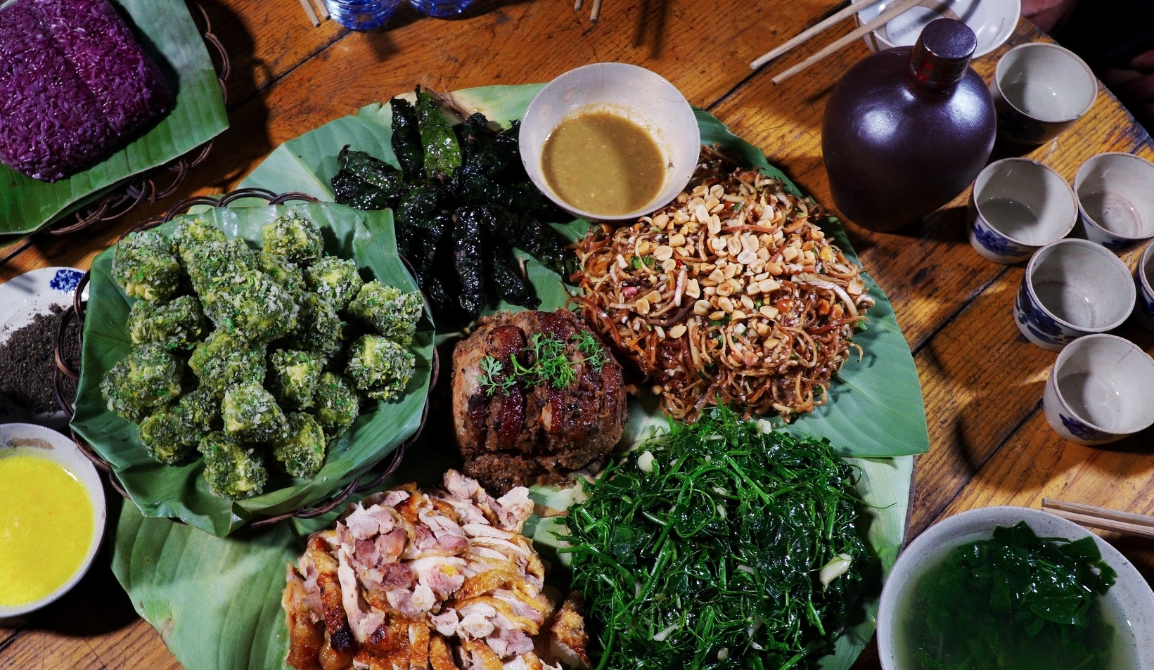 Juliana cũng trực tiếp cùng các gia đình trong làng nấu những mâm cỗ truyền thống với xôi trám đen, khâu nhục, cá chép om bỗng rượu, thịt xào măng chua, đậu phụ bọc trà xanh…