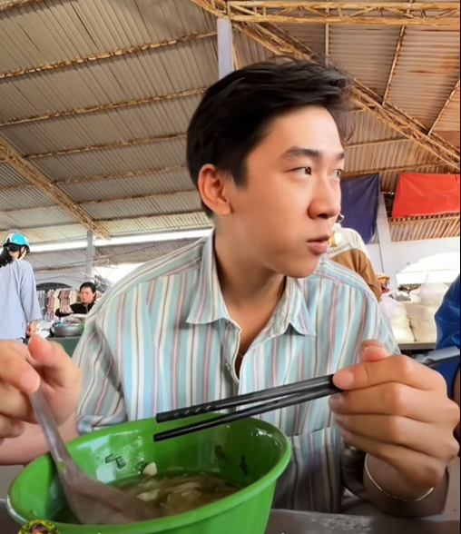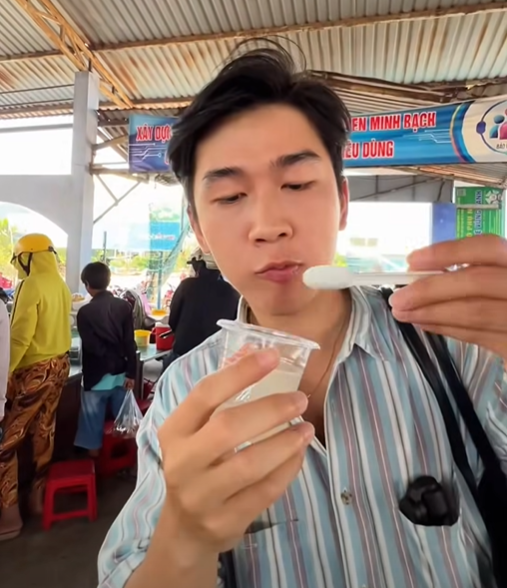 Chàng trai miền Nam trải nghiệm ẩm thực ở khu chợ quê Ninh Thuận. Nguồn: Khải Khám Phá