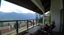 YouTuber người Mỹ cũng tiết lộ, biệt thự có ban công rộng mở, tầm nhìn hướng ra khung cảnh tuyệt đẹp bên ngoài. Đứng từ đây, anh có thể phóng tầm mắt ra xa, chiêm ngưỡng biển mây thơ mộng vào sáng sớm hay ngắm thung lũng Mường Hoa từ trên cao.
