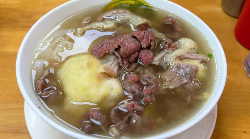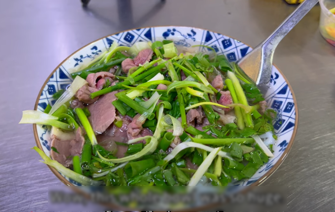 Anh khen phở ở đây phục vụ đầy đặn các loại thịt như sốt vang, tái, chín, nạm, gầu… nhưng giá rẻ, một bát thập cẩm chỉ 50.000 đồng. Ngoài ra, nước dùng đậm đà, đặc sánh. Sợi phở mềm, hấp thụ được tất cả hương vị từ thịt bò và nước dùng.