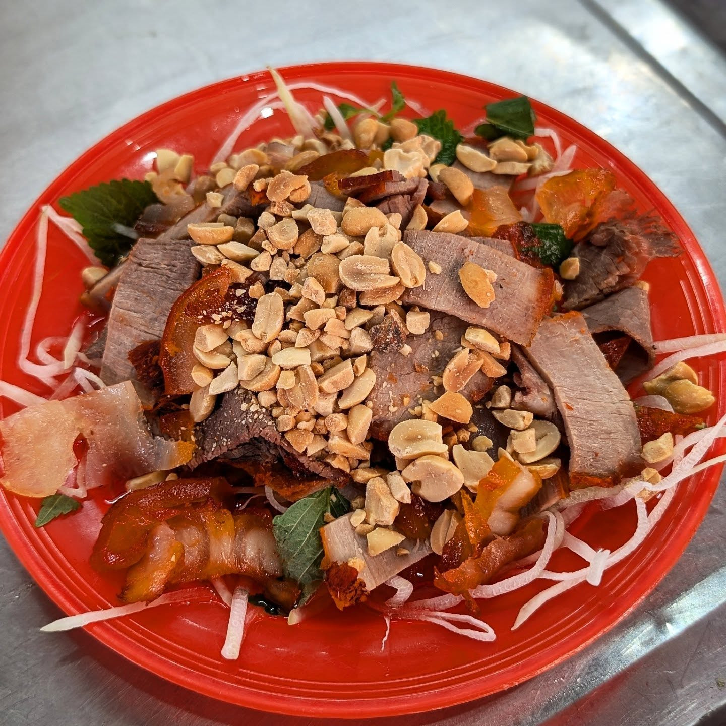 Buổi tối, họ háo hức tìm đến một quán ăn nhỏ nằm khuất sau những hàng quán tấp nập trên phố Hàng Bún. Biển hiệu rất nhỏ, quán chủ yếu phục vụ khách quen, với thực đơn như thịt lợn nướng, nem, rau xào, chả cá lăng…
