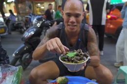 Chiều muộn, họ ghé quán ốc trên phố Đinh Liệt. Khi Chris và Steph đến, quán ốc đông đúc, thực khách ngồi kín các dãy bàn. Cặp đôi thích thú quan sát chủ quán luôn tay luộc những mẻ ốc trong nồi nước sôi sùng sục, khói bốc lên nghi ngút.