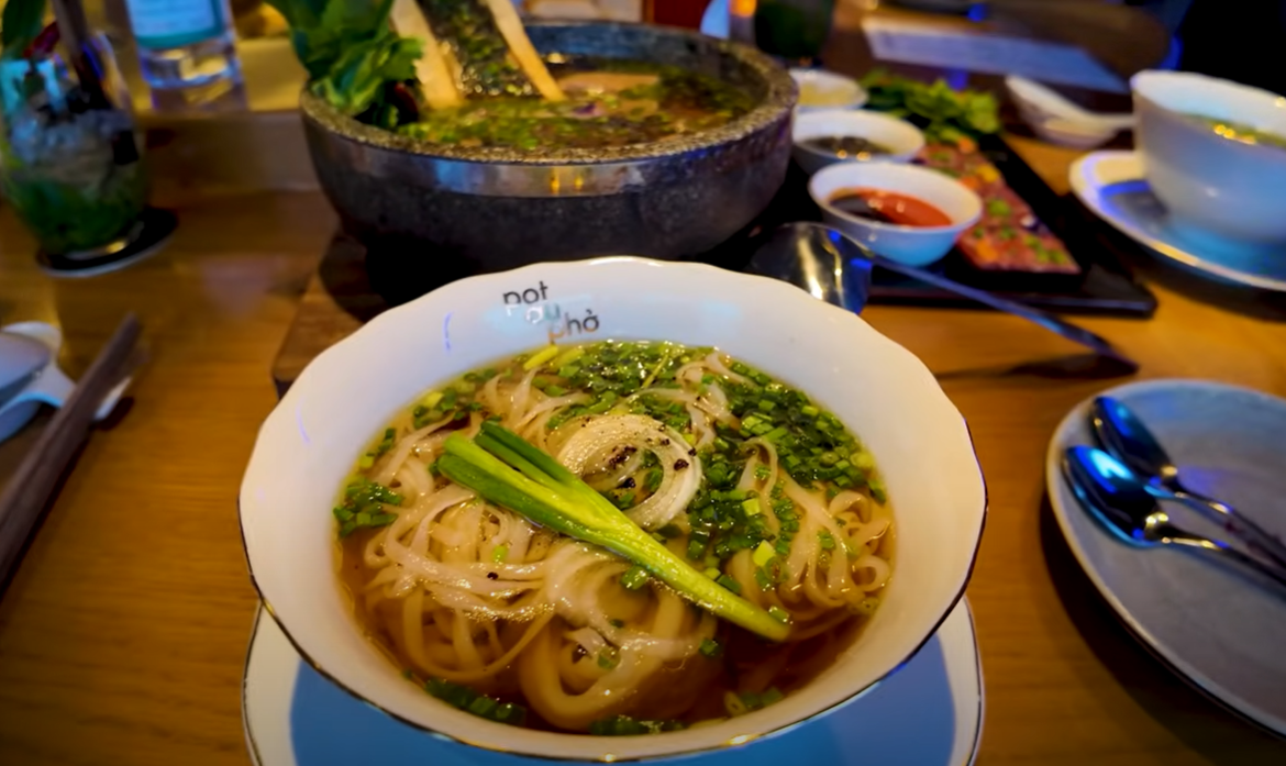 Vị khách Tây nhận xét thêm, món phở này giá thành cao nhưng đáng thử vì ngoài tô phở chính, thực khách còn được trải nghiệm các món ăn kèm độc lạ khác nhau.