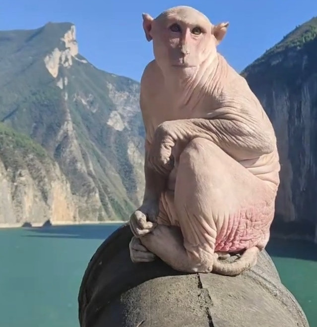 TRUNG QUỐC – Hình ảnh một con khỉ trần trụi, không lông như loài “ngoài hành tinh” ở khu danh thắng Baidi Cheng, Trùng Khánh, đang gây sốt trên khắp các nền tảng mạng xã hội của “quốc gia tỷ dân”.