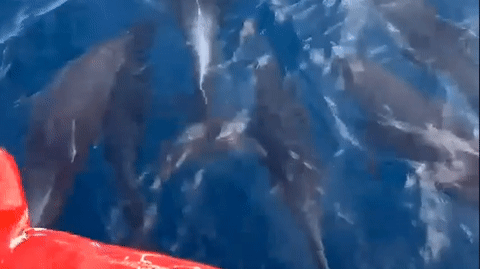 Anh Văn – một người dân địa phương – cho biết, đàn cá heo ước tính có hàng chục con, liên tục bơi lội, ngoi lên rồi lặn xuống mặt nước suốt khoảng 10 phút trước khi rời đi.