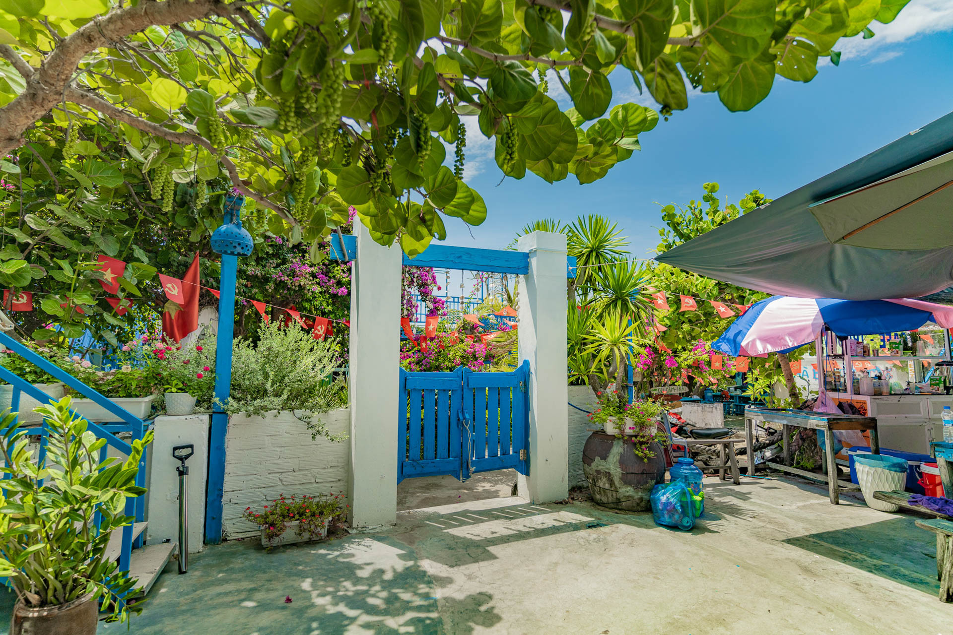 “Bãi biển nơi đây đúng là thiên đường của ‘khối nghỉ hè’. Các bạn ấy có thể nô đùa từ sáng sớm tới trưa mà không chán. Khi nào mệt thì về sân của homestay ngồi nghỉ dưới bóng cây bàng biển râm mát”, anh Nhật kể.