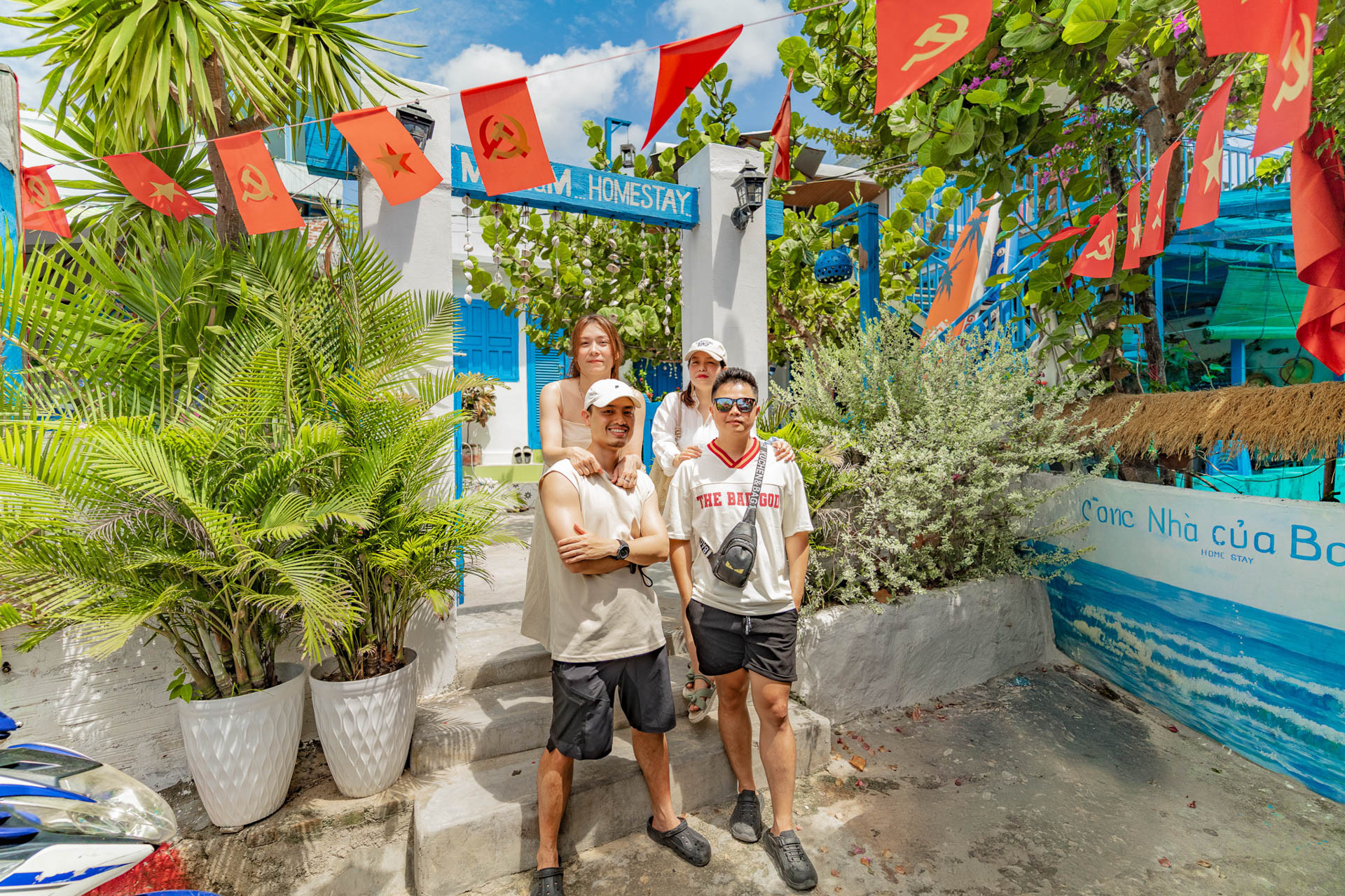 Tới ngôi làng, chúng tôi bất ngờ vì vẻ đẹp yên bình, giản dị, những ngôi nhà trang trí theo cùng tông màu trắng – xanh, những bức tường, cổng chào, biển hiệu homestay đều mộc mạc, tự nhiên”, anh Nhật kể.