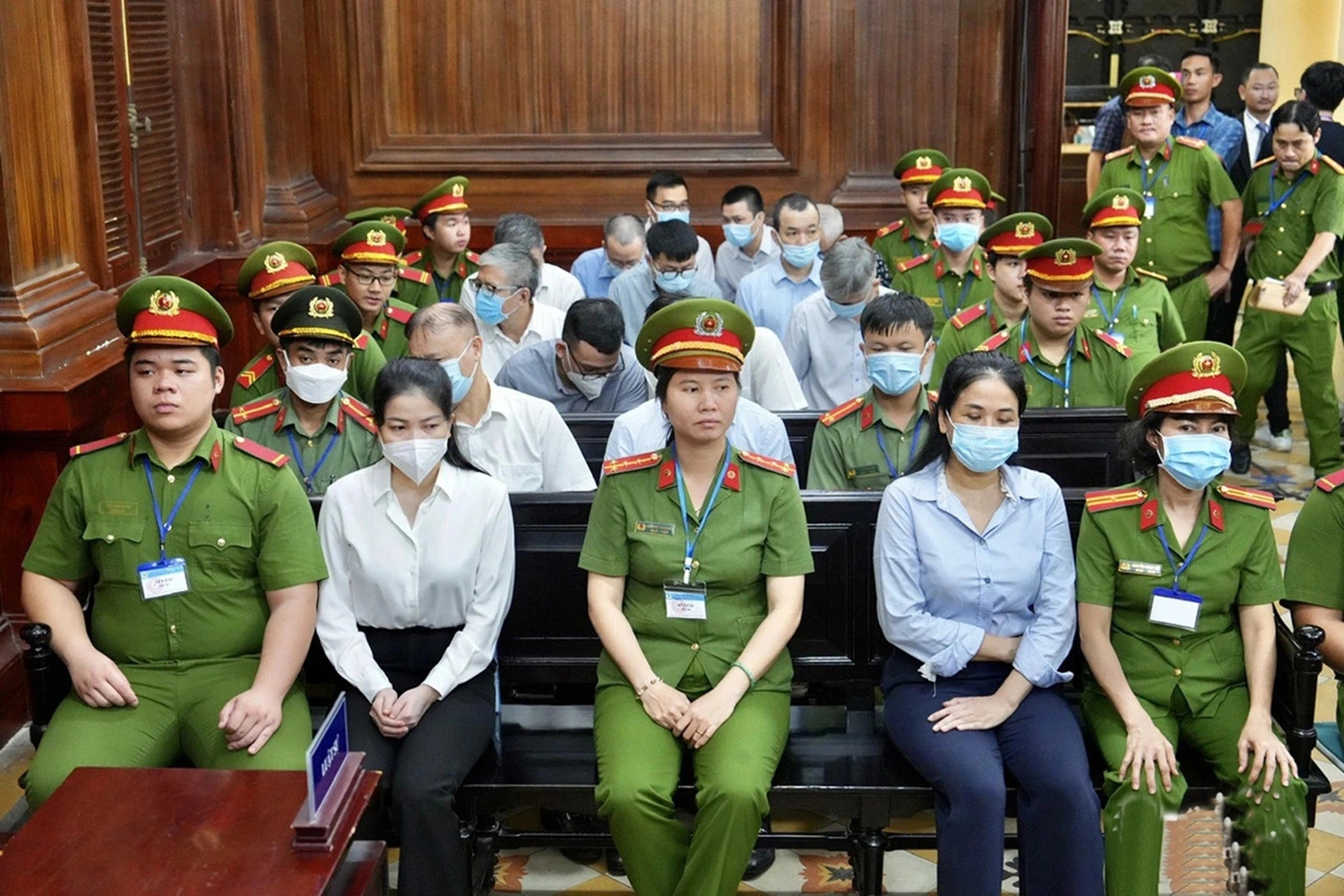 Các bị cáo trong vụ Xuyên Việt Oil tại tòa sáng 25 Tháng Mười Một. (Hình: Hữu Hạnh/Tuổi Trẻ)