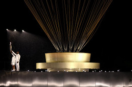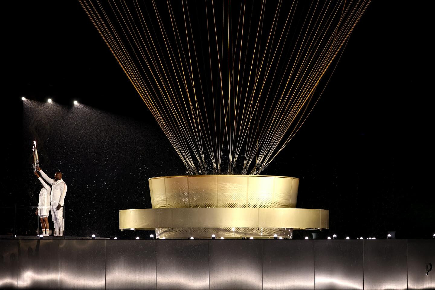 Hai người cuối cùng nhận và có vinh dự châm đuốc là nam võ sĩ judo Teddy Riner và nữ VĐV điền kinh Marie-Jose Perec. BTC Olympic Paris 2024 đã phá cách khi ngọn đuốc của Thế vận hội là vạc giữ lửa được treo lơ lửng trên một khinh khí cầu.