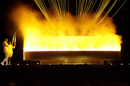Lễ khai mạc bắt đầu. BTC trình chiếu một đoạn video ghi cảnh cựu danh thủ bóng đá người Pháp Zinedine Zidane mang đuốc từ một người trong sân Stade de France, chạy qua nhiều địa điểm trong thành phố Paris.