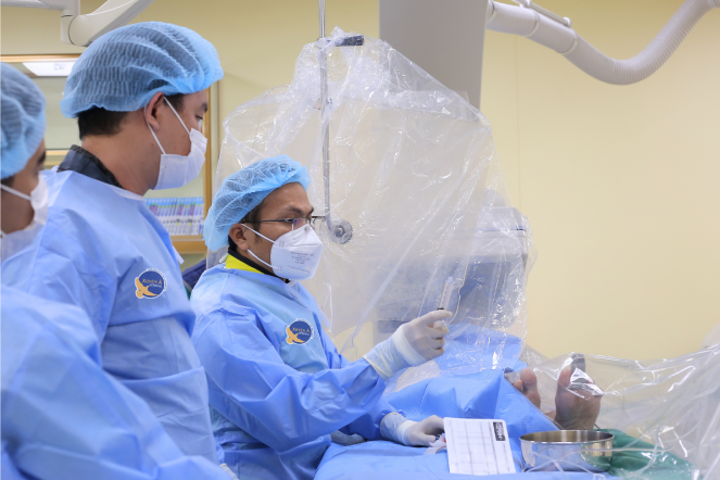 Các bác sĩ xác định ông M. tắc hoàn toàn động mạch liên thất trước – mạch máu quan trọng nuôi tim – và nhanh chóng đặt stent tái thông. Sau 24 giờ, tình trạng cải thiện rõ rệt; sau 7 ngày, bệnh nhân hồi phục và xuất viện.