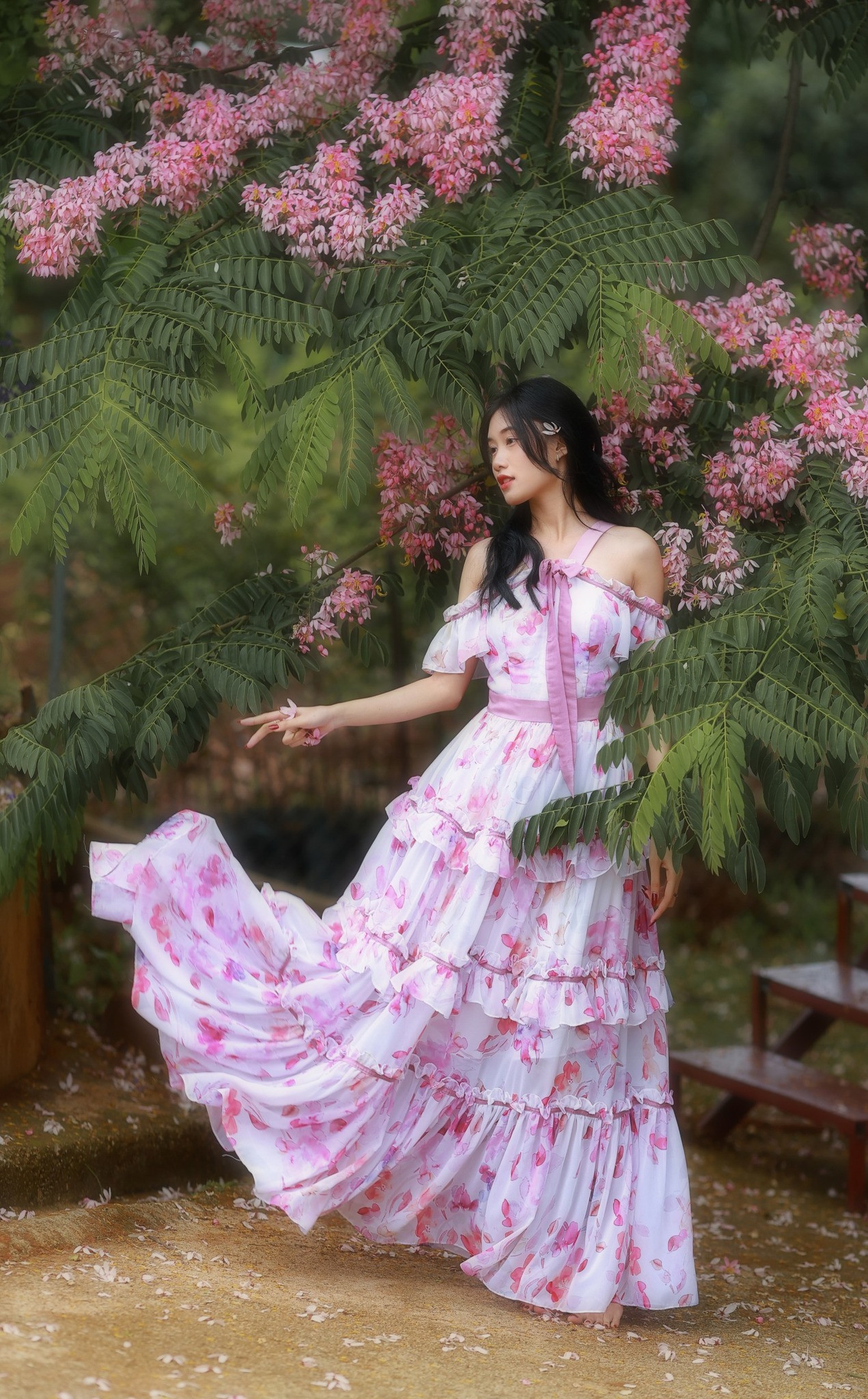 “Những cây muồng anh đào bung nở màu hồng ngọt ngào là bối cảnh chụp ảnh mộng mơ, rất Đà Lạt, được du khách ưa thích”, anh Sam nói.