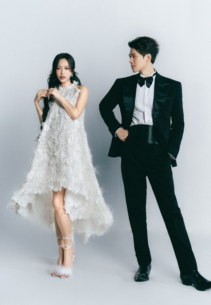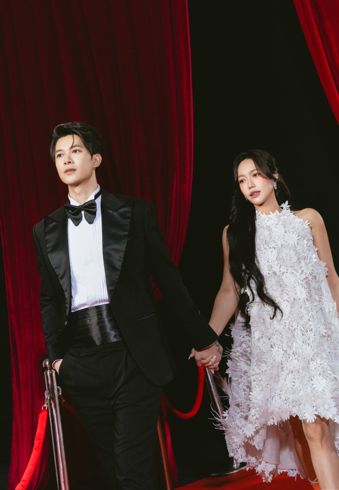 Cặp đôi đã thực hiện bộ ảnh mô phỏng bước trên thảm đỏ nhận giải theo phong cách “đại minh tinh”. Trong loạt khoảnh khắc, Anh Tú Atus diện vest lịch lãm, Diệu Nhi mang đầm trắng kết hợp chất liệu bắt mắt.