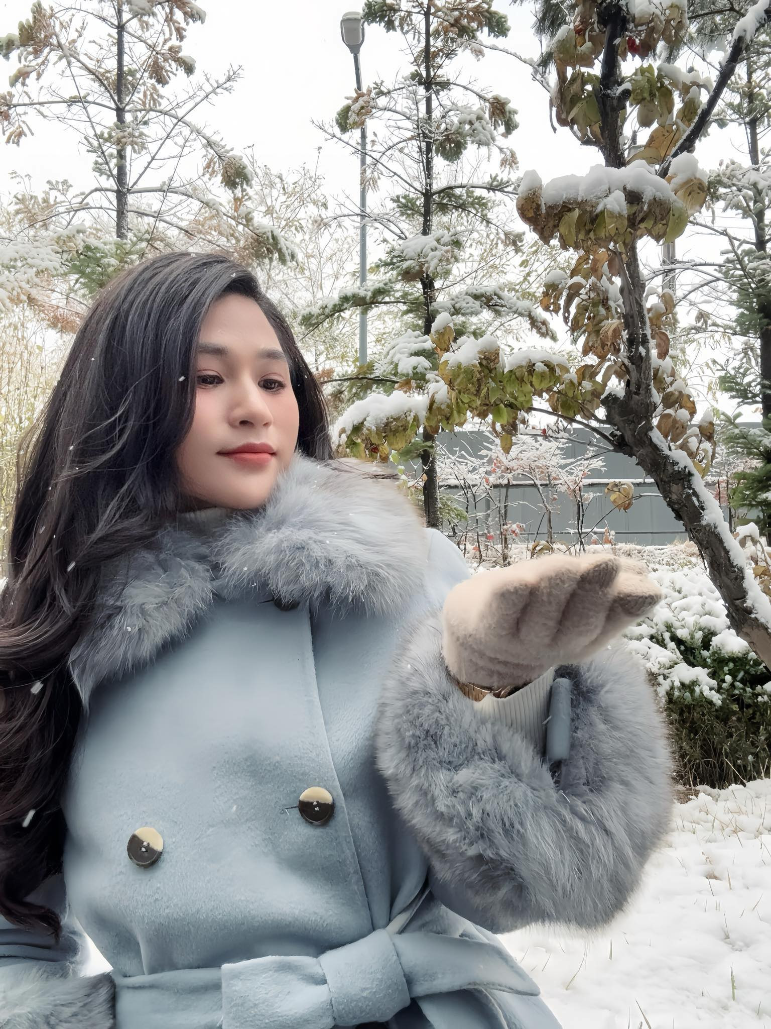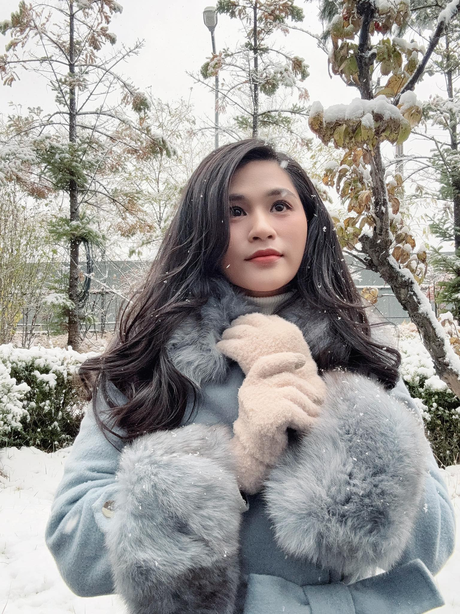 Minh Trang nói thêm: “Tôi có việc phải đi Hàn Quốc gấp, lại rơi vào đúng ngày sinh nhật và tình cờ hôm nay tuyết rơi”.
