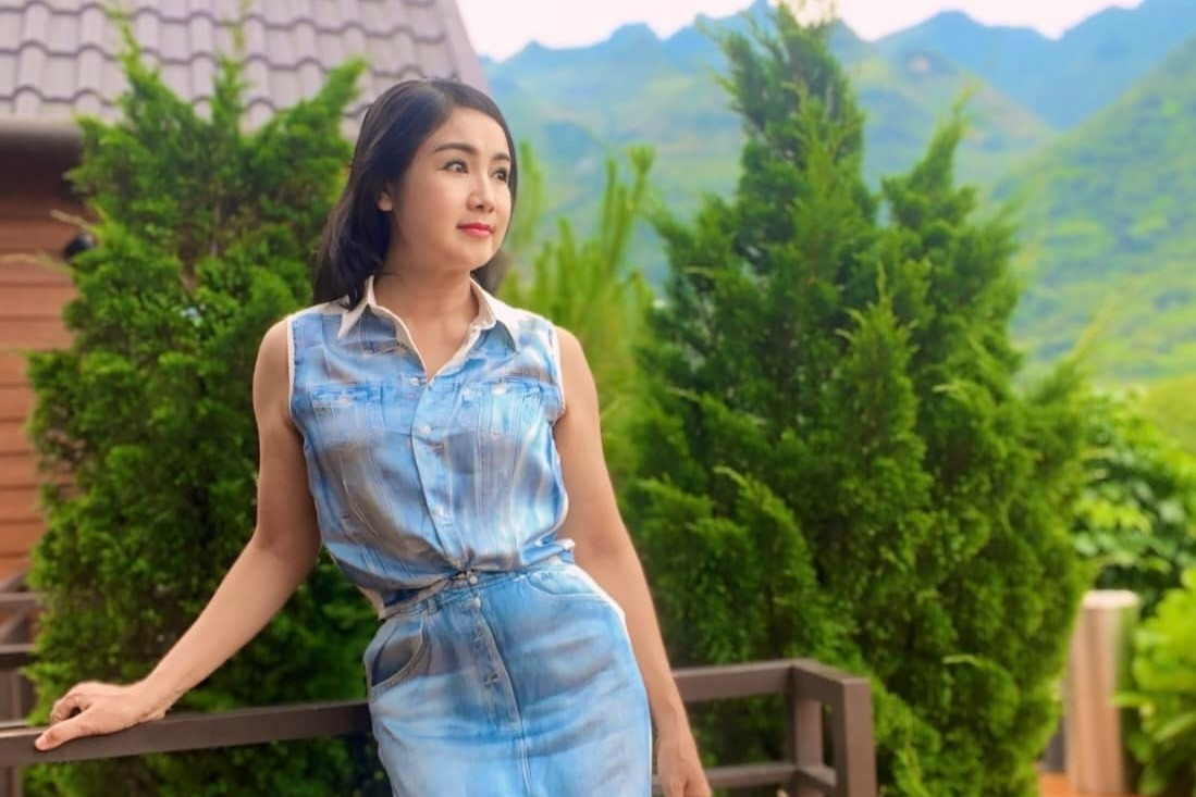 Diễn viên Ngọc Huyền vui vẻ dạo quanh đường phố trong những ngày thời tiết mát mẻ.