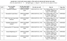 Trong 32 mỹ phẩm do LINK EAST CO., LTD (Nhật Bản) sản xuất và Công ty TNHH JP-Bùi Đặng đăng ký công bố bị thu hồi số tiếp nhận lần này có nhiều sản phẩm của các nhãn hiệu nổi tiếng như sữa rửa mặt Hadalabo foaming facial cleanser hay kem chống nắng Anessa perfect UV Sunscream, được Cục Quản lý Dược cấp số tiếp nhận phiếu công bố vào tháng 9/2024.