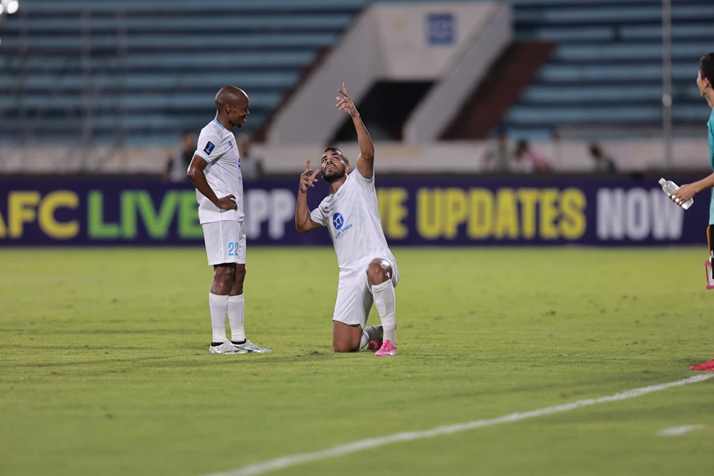 Mahmoud Eid băng lên bên cánh phải nhận đường chuyền của đồng đội, anh treo bóng về phía cột xa để Caio Cesar nỗ lực dứt điểm chéo góc tung lưới Ratchaburi.