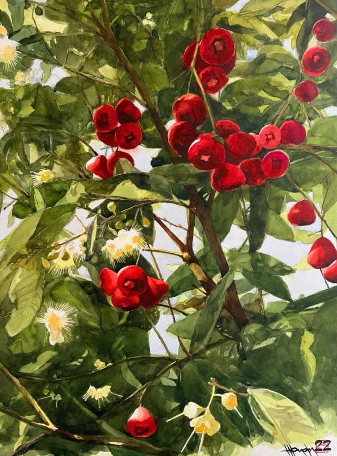 Họa sĩ Phan Trọng Văn – giám tuyển của triển lãm – nhận xét: “Chất liệu màu nước trên giấy ép lạnh (arches cold-pressed) được anh ấy khai thác một cách điềm đạm và tinh tế. Từng lớp màu chồng mỏng, những khoảng trắng của giấy được giữ lại, những vệt loang nhẹ như sương mai”.